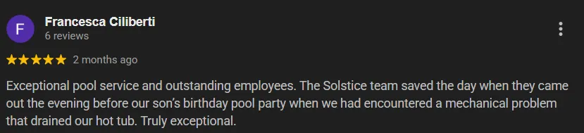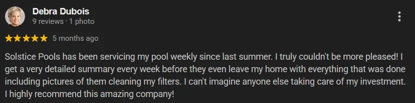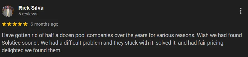 We treat every pool like it’s our own. With transparent pricing, reliable scheduling, and friendly service, Solstice Pools is a partner homeowners can count on for long-term enjoyment.